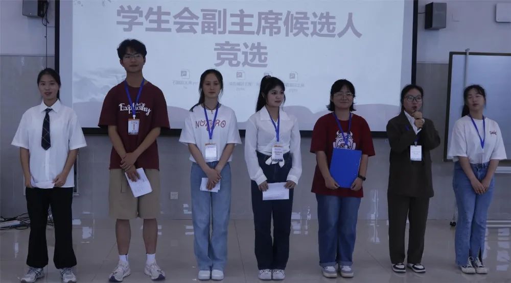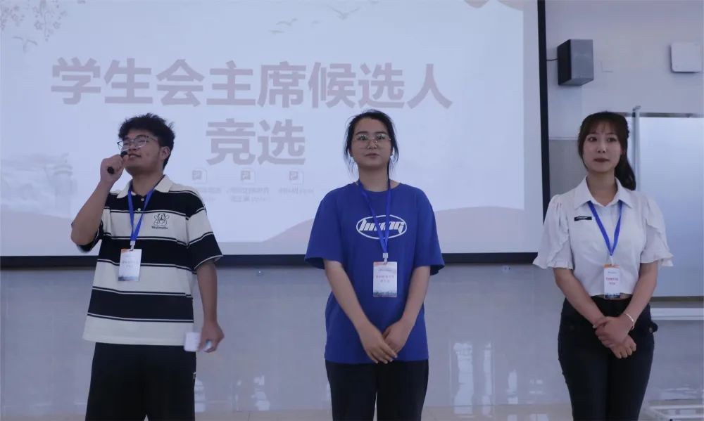 主席团候选人竞职演说。竞选的学生们发表了激情洋溢、活力四射的竞选演说并现场拉票💈🚶‍♂️‍➡️。全体成员投票结束后,丰丹副院长总结发言,对各部门本学期工作作出总结和肯定💇🏽‍♀️,并对今后工作提出更高的期望⚠:首先学生干部要做好学院与学生之间的连接桥梁,及时上传下达学院各项通知;其次要将重点工作与专业特色相结合,日常工作与服务学生相结合;最终以服务学生的学习,服务学生的生活👩🏼‍💼,服务学生的身心健康为宗旨。