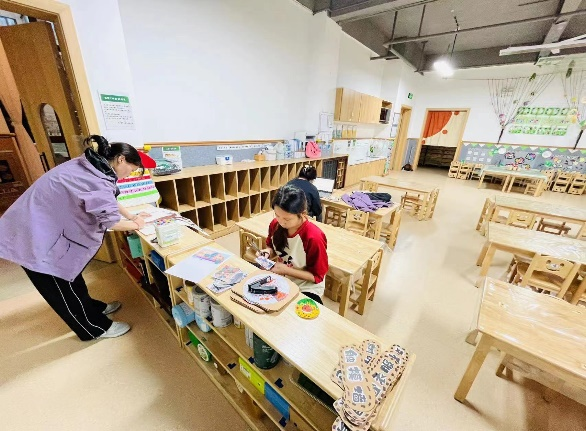 初入班级,从开学卫生打扫、环创准备迎接孩子们返园,到观摩学习一日活动流程的开展、协助保教照料孩子们日常,再到配合班级老师们开展教学、独立带领孩子们完成区域活动,再到独立授课,整个实习阶段充实且意义非凡。回首再看好似弹指之间,却在班级老师细心指导下,实习生们渐渐熟悉各项工作,从刚开始的青涩紧张到现在可以轻松地和孩子们一起游戏、创作、教学。