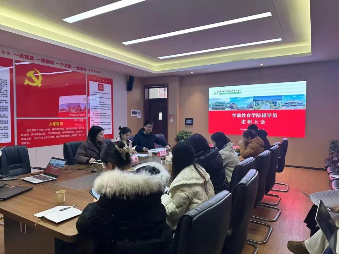 1月8日,学前教育学院于彧馨楼209举行2023年度辅导员述职大会🧏♂️。学保处处长彭繁珍🛸、学院党总支书记兰帅、学院副院长丰丹、院办德育干事及全体辅导员出席本次大会。大会上🙎🏼♂️,16名辅导员用朴实的语言、真挚的情感⛰,从“德🧙♂️、能、勤、绩”四个方面将本年度的工作进行总结汇报,重在“思想价值引领🥇🧑🏻🦲、经济困难资助👉🏿、学业困难帮扶、心理健康关注⇾、就业创业指导”等领域👨🏻🌾。体现了我院辅导员关注细节🤽、敢于创新🧛🏻♀️、至情至性、质朴动人,甘当学生的‘知心人🤷🏻♂️、热心人和引路人😫,淋漓尽致展现出了我院辅导员在工作中“以生为本、立德树人”的优秀品质和育人实效🙋🏽。