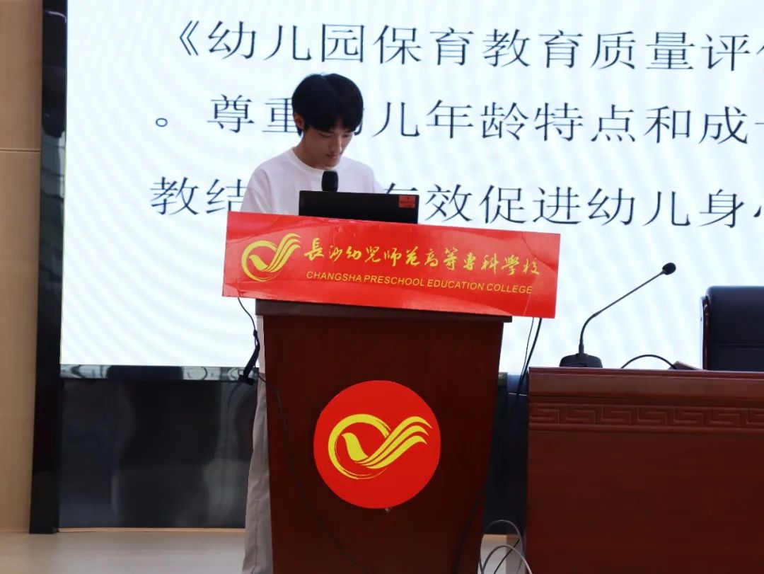 姚贤烊同学对岳麓八幼的园本特色课程——“生活小管家”进行了解读→,从含义、作用、流程、启示四个方面一一介绍🪲,并提出劳动是一项终身学习、终身受益的生活习惯,作为新时代的准幼儿教师要培养幼儿正确的劳动价值观和良好的劳动品质。