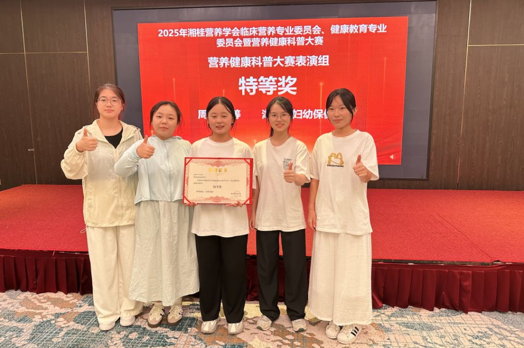 近日,2025年湖南省营养健康科普大赛传来捷报:我校23级医学营养一班学生,在担任实习生期间,代表湖南省妇幼保健院、中南大学湘雅三医院参赛,凭借过硬专业实力,勇夺特等奖与一等奖,在全省舞台尽显青春风采,为校争光,树立榜样!