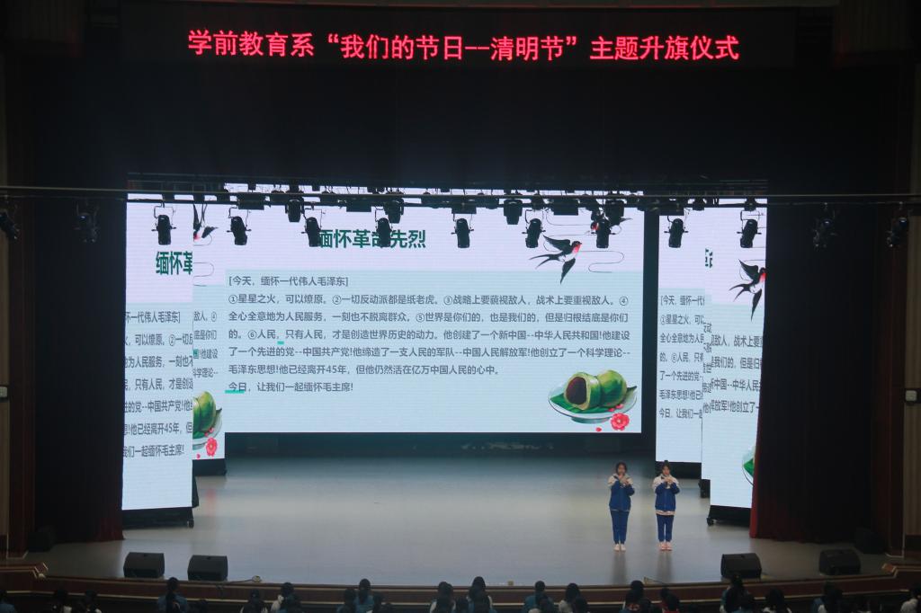 缅怀革命先烈,弘扬革命精神👨🏿‍🎤,学前教育系举行了“我们的节日——清明节”的主题升旗仪式。本次升旗仪式由2020级早教一班主讲。