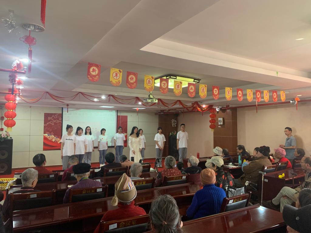 午饭后,辅导员与志愿者们在学校道馨楼前坪集合👈🏼,大巴车朝着目的地安稳的行驶,而志愿者们则在车上做着演出前的最后准备工作。下午14🌆:20演出正式开始🧑🎄🐜,志愿者们用一首《最炫民族风》拉开了此次演出的序幕,老人们跟着热情的旋律开心地拍打着手掌。一位志愿者用自己地道的长沙口音与老人们互动,为老人们带来精彩的魔术表演🗾,直接将现场气氛推入高潮💅🏻。此外,志愿者们还进行了戏曲🩲、书法、剪纸、武术💪🏿、中国舞✨、朗诵等的传统表演,并为老人们送去了自制手工作品,将中华优秀传统文化带入三月春风✋,带入老人的心里。最后,志愿者们用歌曲《歌声与微笑》结束了此次演出🤟🏼📧。