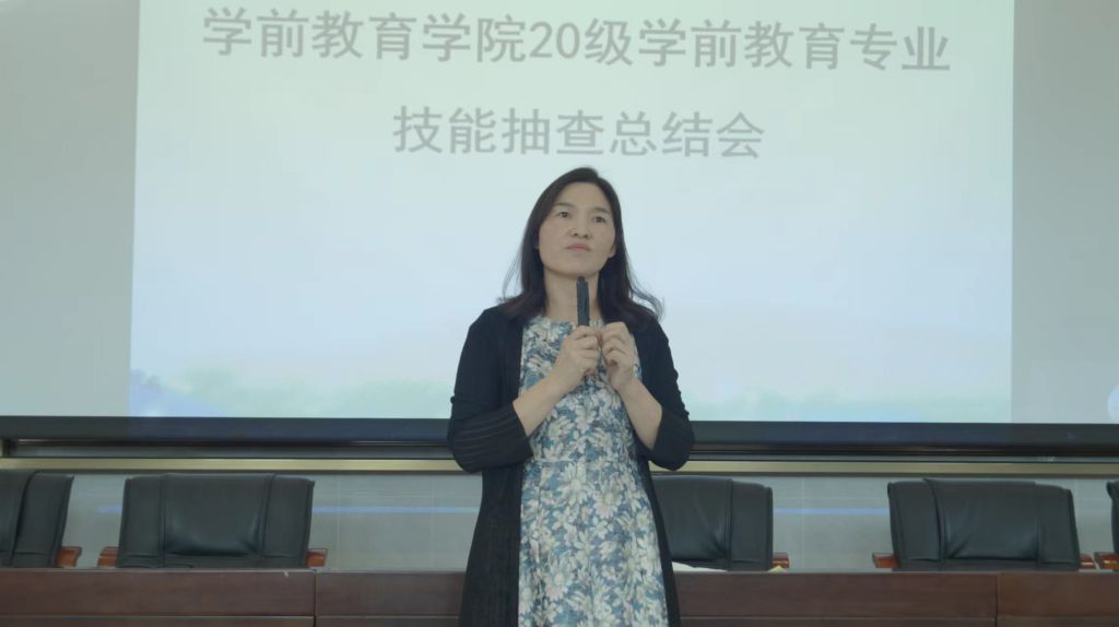 各模块负责人对本次技能考核的情况进行总结与分析,给同学们提炼经验🚣🏻🏒。李君俐针对保育模块详细给学生介绍考试流程及注意事项;吴艳芳通过三个问题与同学们一起总结游戏模块的考核经验;王俊杰从教案的书写、面试的教姿教态👱🏿♂️、活动的设计流程等方面给学生进行梳理;陈郁从考试的流程、站姿🐖🤞🏿、手势👩🔧、布局示范图等方面给大家进行了环创模块的总结👨👩👧☔️。