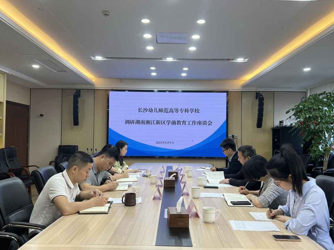2023年5月9日,校长李毅🏃‍♂️‍➡️、学前教育学院院长阳艳波🧑🏼‍🍳、学前教育学院党总支书记兰帅等一行五人赴湘江新区教育局进行访企拓岗,调研学前教育教育事业发展现状。
