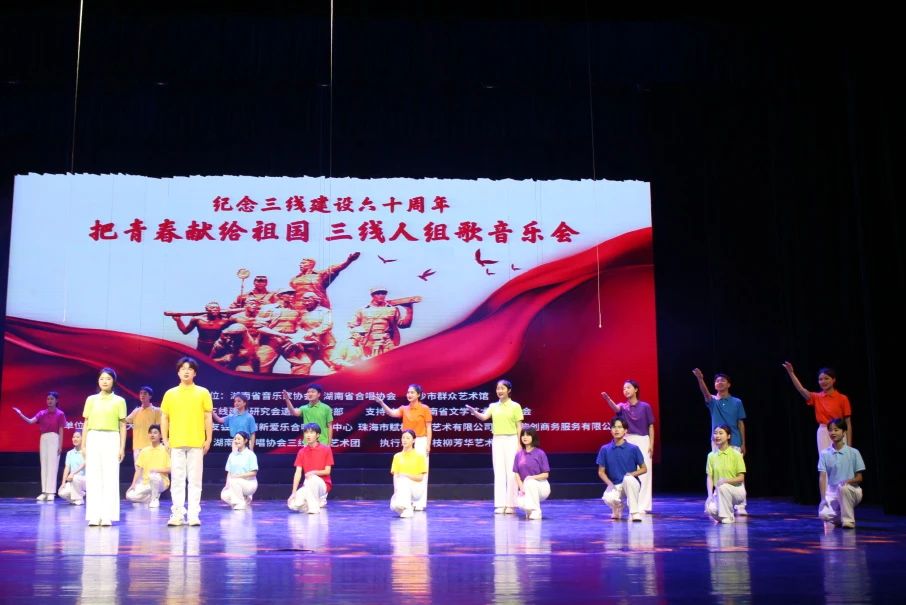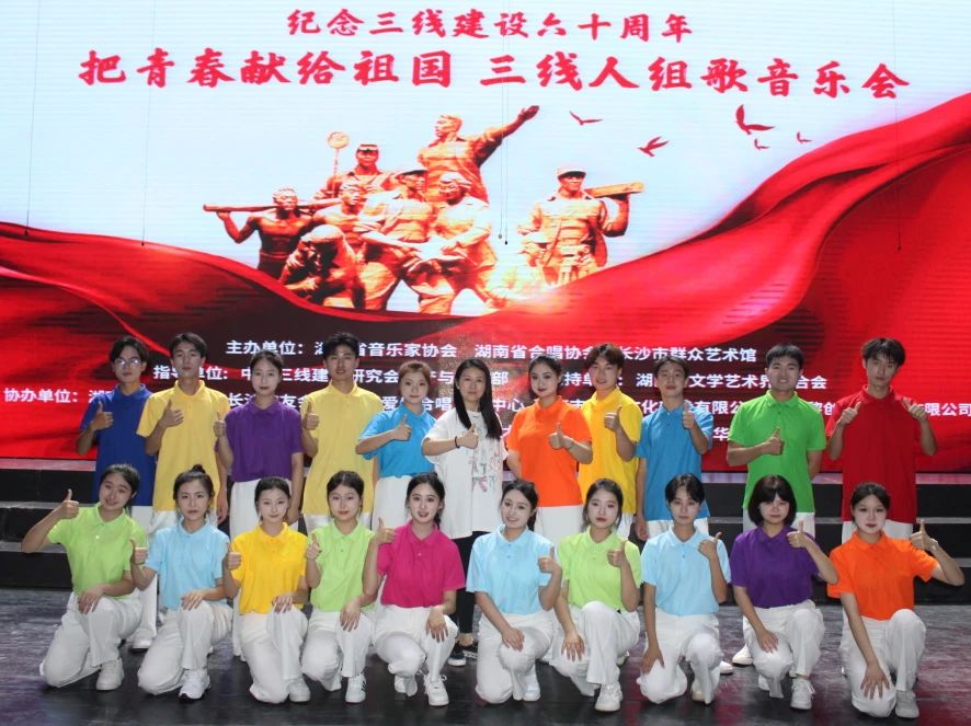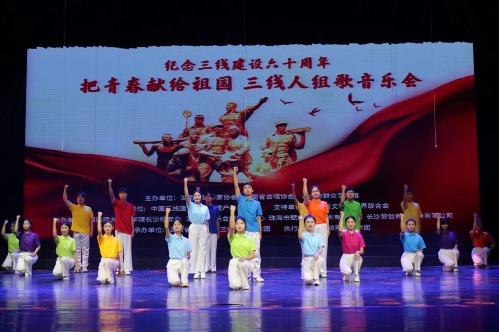 6月16日晚🤽🏽‍♀️,纪念三线建设六十周年“把青春献给祖国”三线人组歌音乐会在长沙市实验剧场举行👈🏼。我校宁觉之声·语言表演艺术团受邀参演。