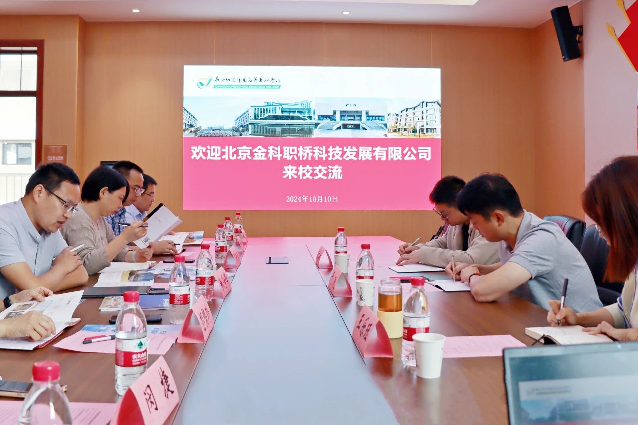 10月10日,北京金科职桥科技发展有限公司副总经理于跃一行3人来校指导交流😪,我校副校长张学锋出席🤶🏽,党委委员兼学前教育学院院长阳艳波主持座谈,教务处、学前教育学院、继续教育与国际交流学院等相关负责人参加交流。