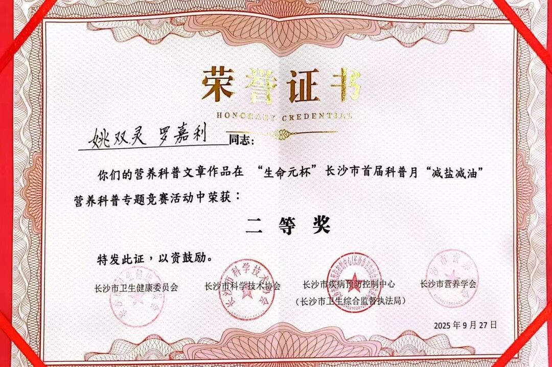 在金秋九月👩🎨,当大多数2025级新生还在适应全新的校园节奏时,学前教育学院医学营养专业的新生罗嘉利,却在入学不到一个月的时间里🚶♀️,完成了她的第一个“小目标”——她在长沙市首届科普月营养科普专题竞赛活动中荣获二等奖,用行动诠释了何为“有备而来”与“厚积薄发”💝。