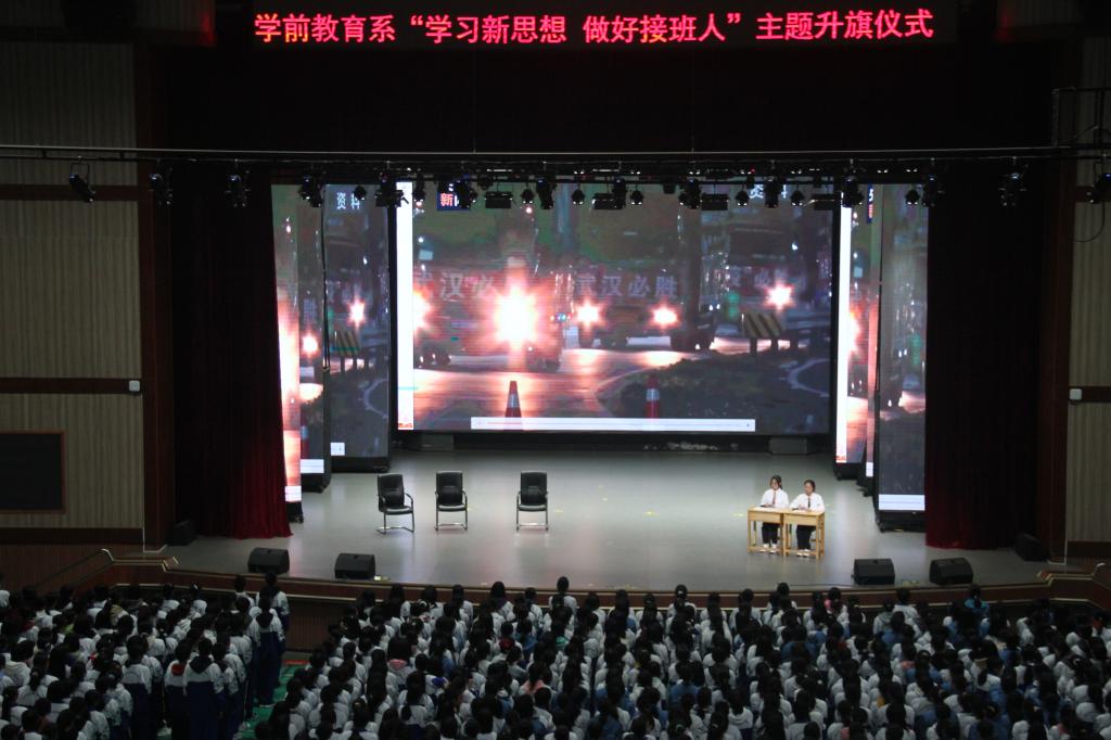新一代的青年,成长于改革开放的岁月,对时代的进步有深切体会,对国家发展有着强烈认同。新时代,意味着我们进入了一个新的发展阶段,作为新时代的好少年,我们既要学习书本知识又要多学习课外知识,勤于思考,不懂就问,做一名合格的社会主义接班人。10月9日上午,学前教育系在汇美馆举行了“学习新思想 做好社会主义接班人”主题升旗仪式,本次升旗仪式由学前教育系1901班主讲,以“新闻联播”这一极具特色的形式呈现在大家面前。