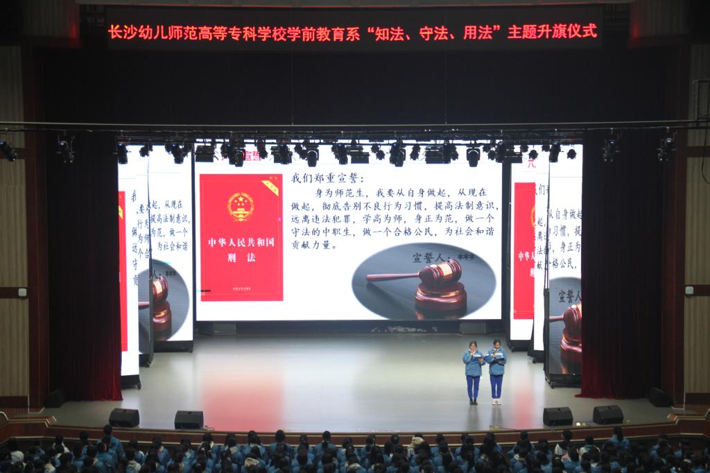 12月4日是我国法制宣传日和国家宪法日,依法治国是我国基本治国方略。学校重视对学生的法制教育,竭力普及学生的法律知识👂🏼🤺,教育引导全体学生知法👩🏿🍳、学法、懂法💵、守法💼。 学前教育系于12月7日上午在汇美馆举行“知法🧖🏿👰♂️、守法、用法”主题升旗仪式,本次升旗仪式由2001班主讲。