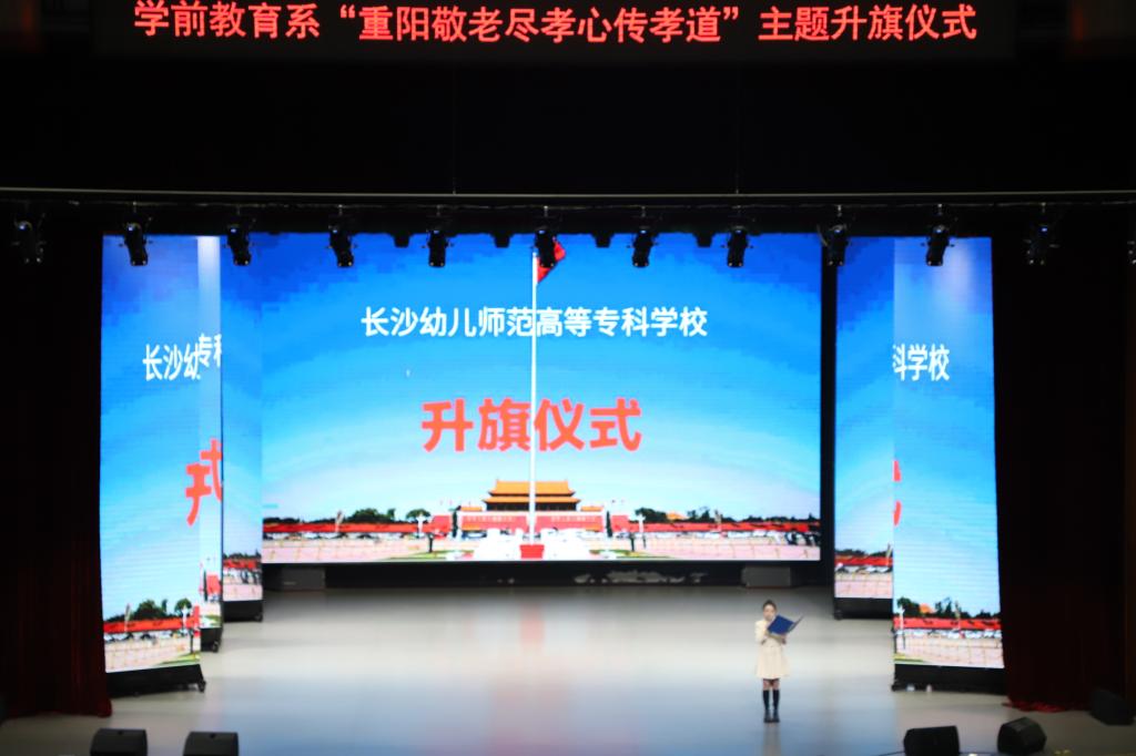 为弘扬中华民族敬老爱老的传统美德,展现青少年尊老敬老爱老的精神风貌,树立学生的社会责任感和历史使命感,神彩争霸8安卓下老版本学前教育系于 10月18日上午,在汇美馆开展了“重阳敬老尽孝心传孝道”的主题升旗仪式。本次升旗仪式由1909班担任主讲。