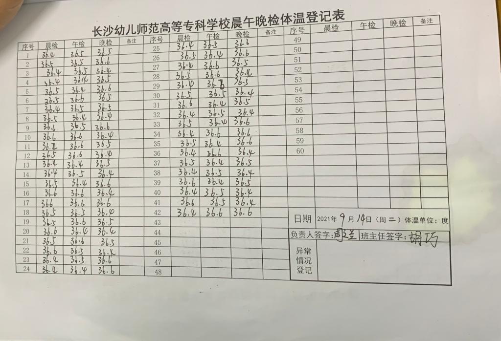 各班辅导员也积极配合系部工作开展,督促学生做好自查并每天做好体温测量、台账本的填写工作,每天准时上报因病缺勤情况,对出现异常状况的学生及时进行追踪管理,严格审批学生的请假,做到非必要不出校。学生们也每天坚持做好晨午检工作,固定时间自觉对教室开窗通风进行消毒,每周日准时上交两码核实自身健康状况。