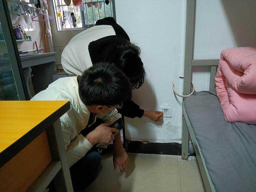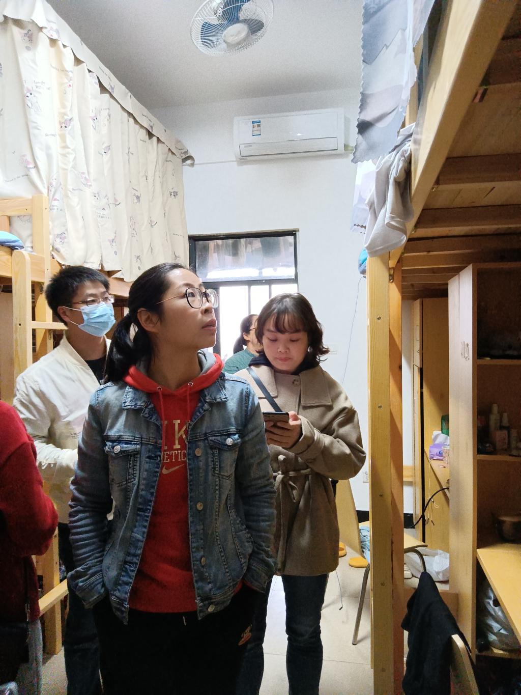 老师们在此次检查中重点关注寝室里无人时是否保持卫生整体状况良好、是否存在相应的安全隐患问题两个方面。如:宿舍环境是否干净整洁、排插是否拔掉、电源总闸是否关闭以及是否存在使用违禁电器的情况。兰帅与各辅导员对存在以上相应问题的寝室进行相关记录,并及时督促限时整改。本次检查状况良好,可以看出学生们不仅有良好的生活卫生习惯,还具有极高安全意识,所抽查寝室均未出现严重安全隐患,个别寝室存在未及时拔掉排插的情况已经进行了反馈。