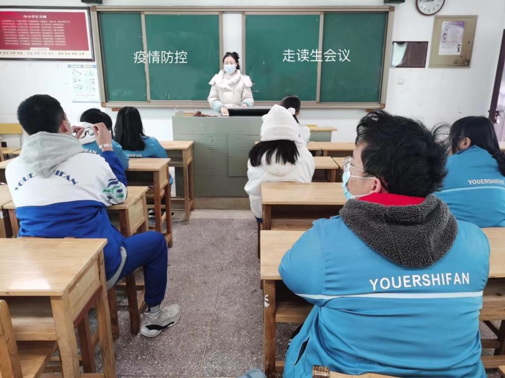 走读生疫情防控会议上,李钒老师就走读学生特别强调了几点返校时的要求:学生返校前需查看自己的健康码和同住人员健康码,只要有黄码,学生坚决不能返校;特护期必须由家长接送,往返途中需做好个人防护,佩戴口罩;并要求走读生家校两点一线,不去其他地方。