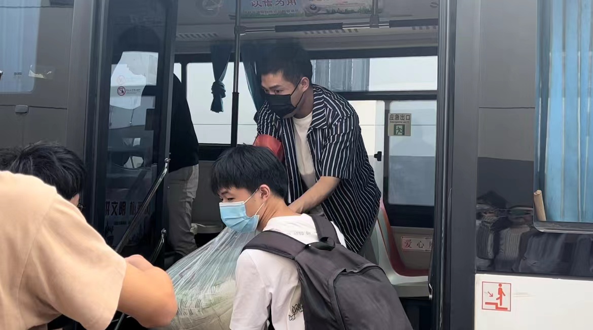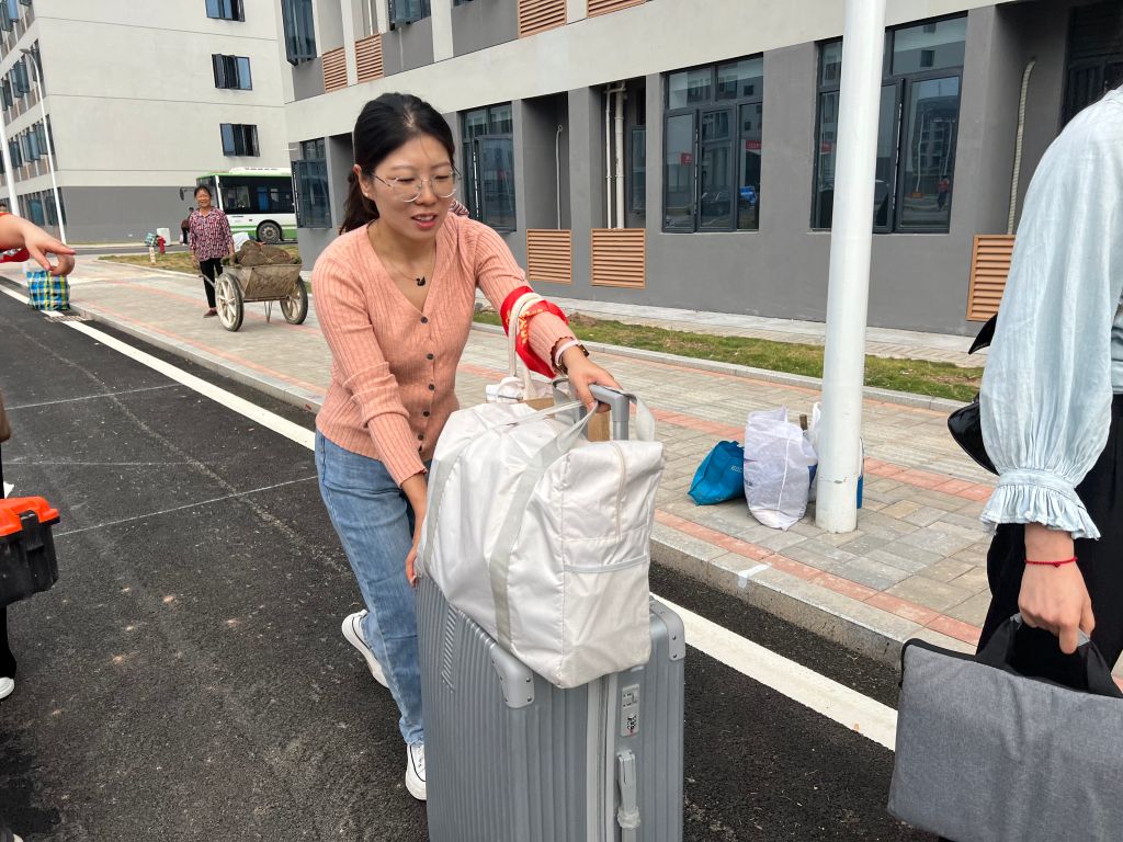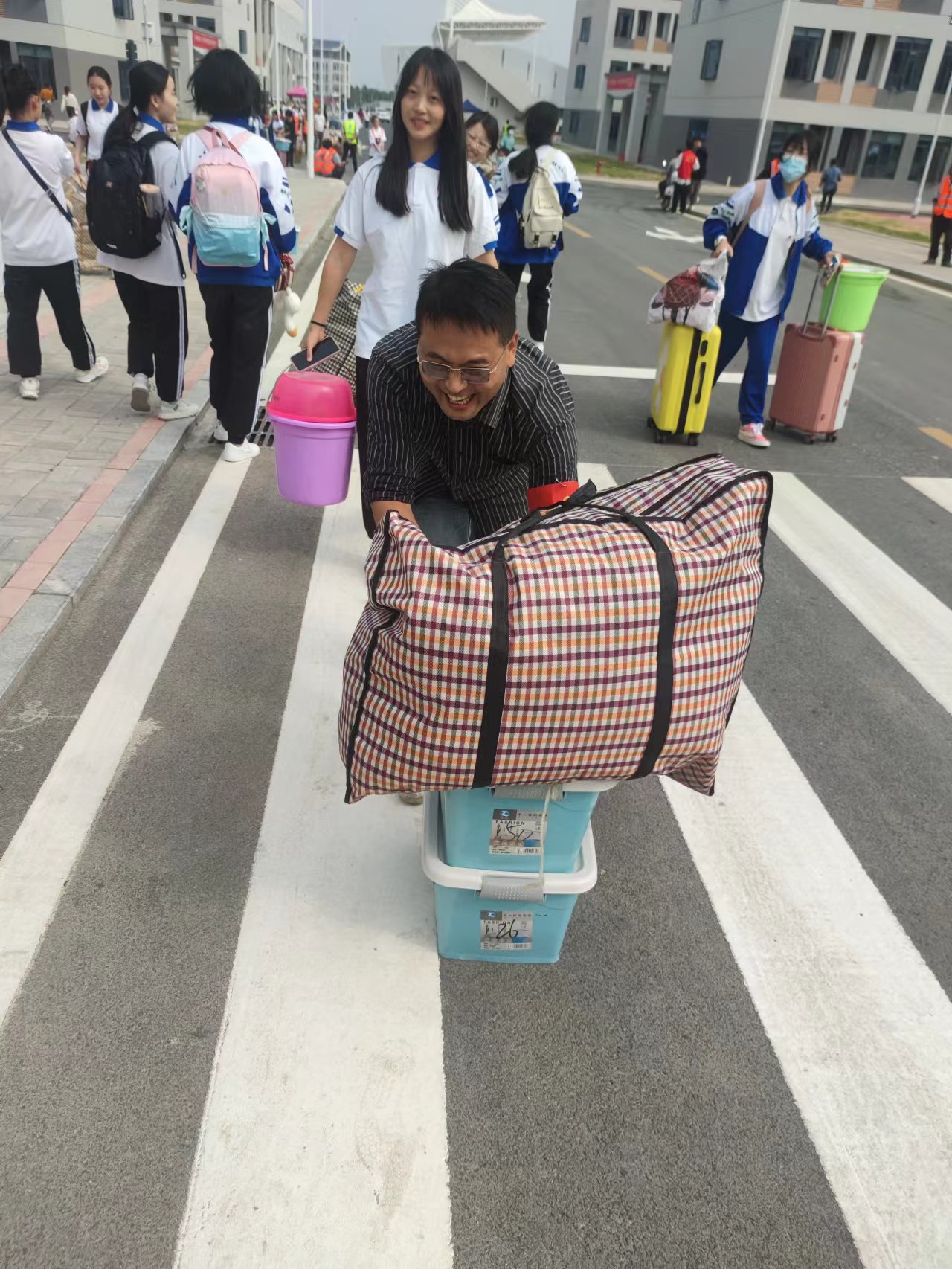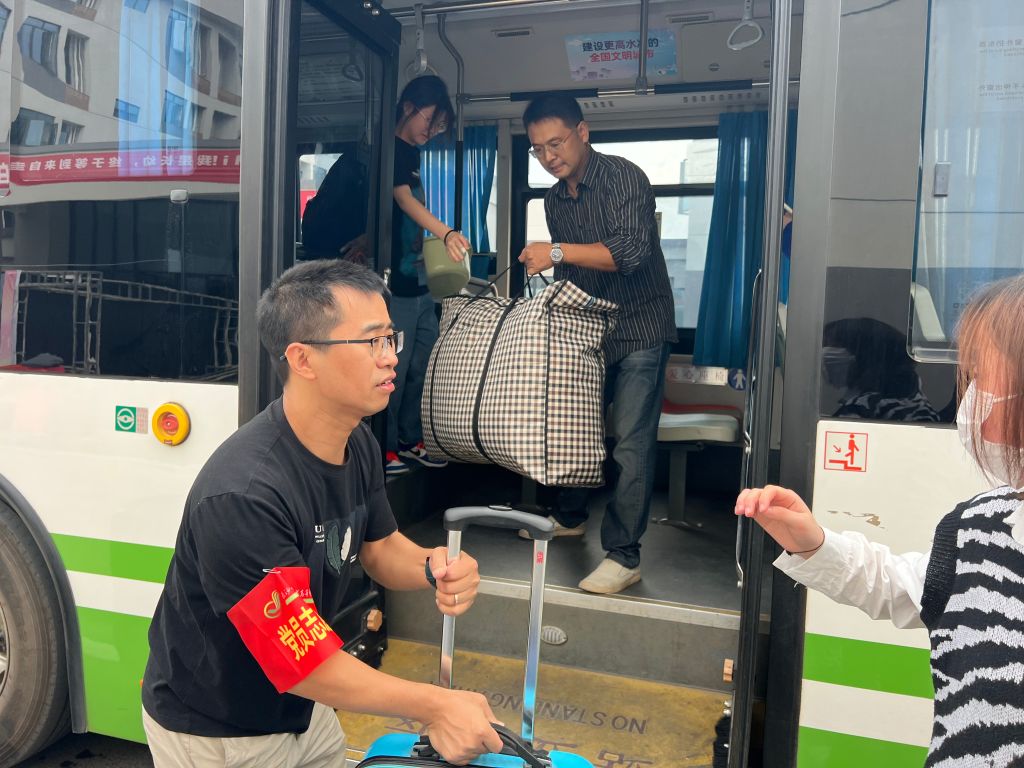 上午9点📣,学生宿舍楼下已经可以看到学前教育学院党员志愿教师们忙碌的身影👨‍🍼𓀉。每来一辆载满学生的大巴🧏,雷小云🤛、杨林、张柱几位老师便冲上前去,指挥学生有序下车👈,“孩子们,零散行李你们自己带下去,大件重件不用管,我们来搬!”雷小云老师第一个冲上车🐴,随后三位老师以“接龙”的形式,你传我接🧑🏽‍🏭,卸下整车行李🍭💇🏽。随后,刘满莹🏭、张玲、李剑波、杨祖爽、杨少武🧯、李丹几位老师也忙开了,他们左手提着一大袋🤶🏿,右手推着一大箱🙅🏽,肩上还扛着一大包🧼,一趟又一趟🤿,奔向各栋宿舍......他们是老师🧑‍🏫👩🏿‍💻,但是此时🥪,他们更像送孩子到校的父亲、哥哥、姐姐。