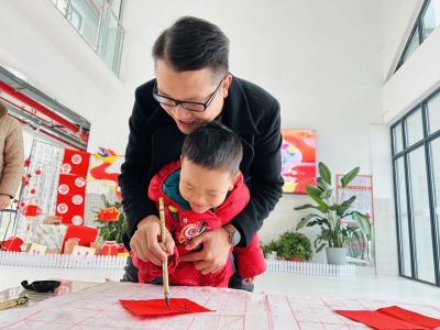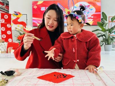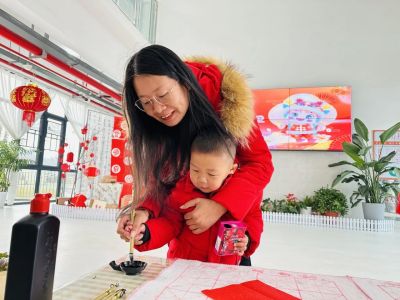 新年到,祝福到,幼儿园里真热闹。孩子和家长们纷纷穿上红色新年服来到幼儿园,“画”着一张张新年“福”字,书画一笔笔浓浓的年味,传承源远流长的民俗文化。