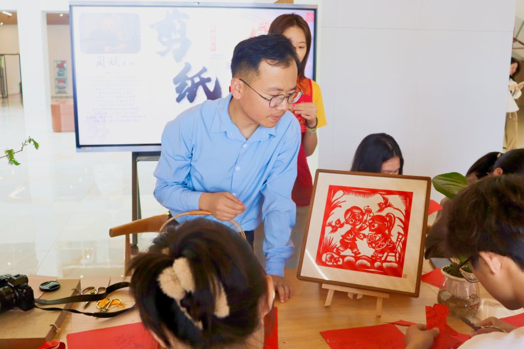 。各类展示体验桌被围得严严实实,学生们求知若渴地等待着老师们的讲解,糖画桌前更是门庭若市,学生们有序排队,只为等待一份精致香甜的糖画🌓🦴。精巧奇特的编织和剪纸,底蕴深厚的扎染和糖画,香气扑鼻的插花和制香,高雅古典的盘扣和茶艺,