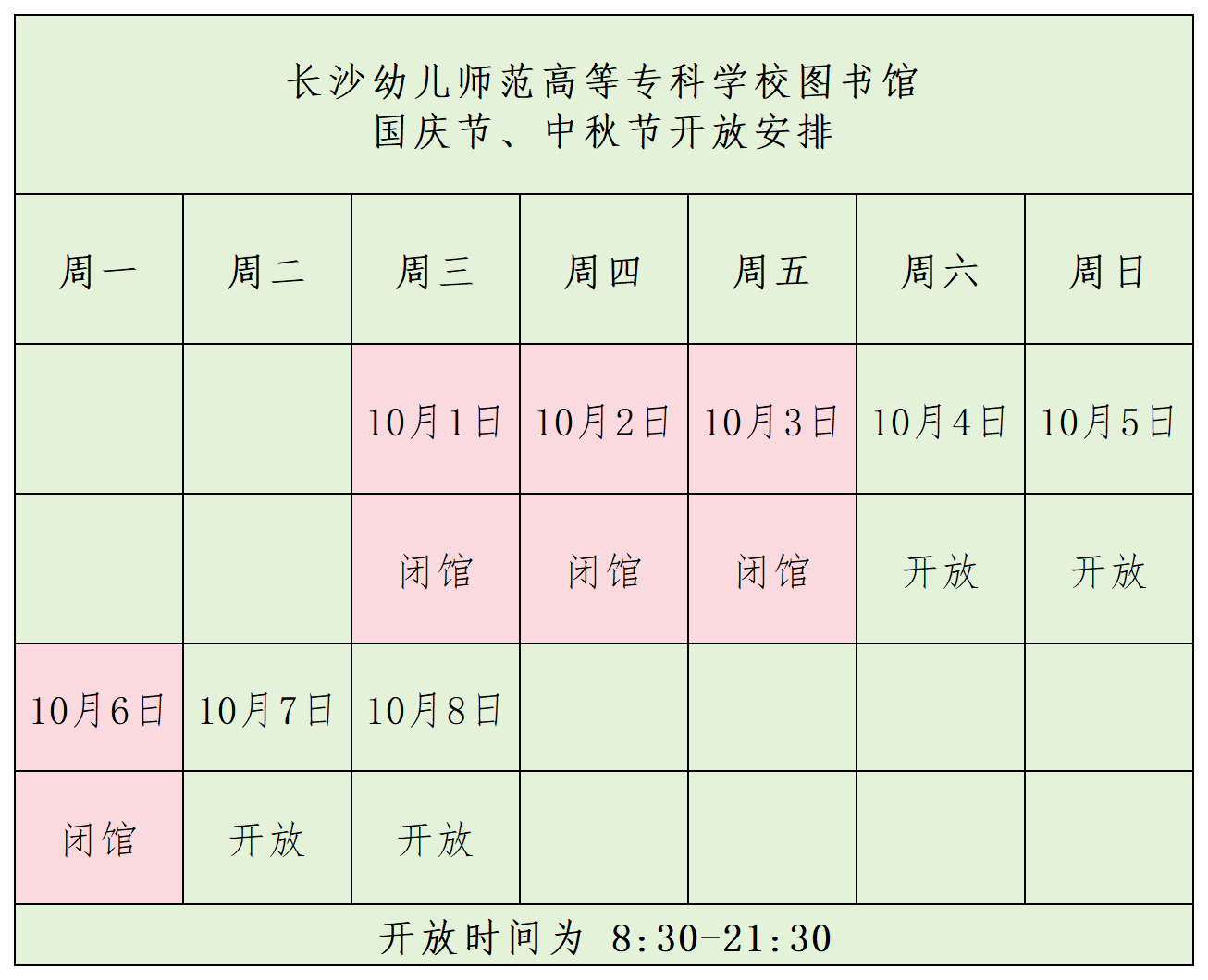 根据国家放假规定👩🏽🦳🐿,图书馆国庆节、中秋节期间开放时间调整如下🍭,请老师和同学们合理安排时间🦑。国庆、中秋假期间欢迎来图书馆阅读🛕、休闲和自习。