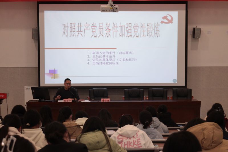 党章是各级党组织和广大党员的最高行为规范,是党内的根本大法。为了更好地加深我校学生对党的认识👨🏼🌾,更准确地了解共产党员的条件,11月29日下午,在德馨楼132教室举行了2022年青年党校入党积极分子学习班第二课🏫。本次培训由组织人事处处长张学锋担任主讲人👩🏻🦼,组织人事处副处长蒋婷汝主持。