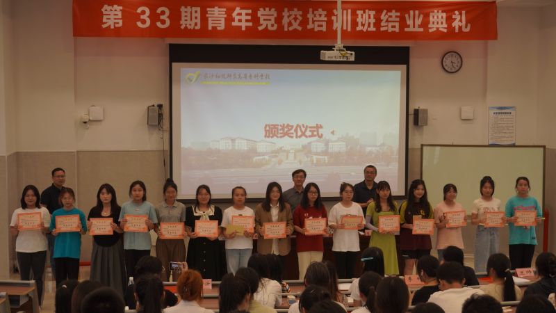 接下来☑️,李慧中宣读本次青年党校的表彰决定😡,肖思源𓀜、李慧中为欧阳典典等29位获得优秀学员的同学颁奖。