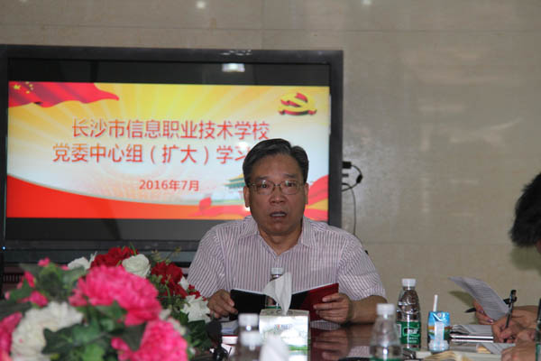 7月24日上午,长沙市信息职业技术学校召开党委中心组(扩大)学习会议,校党委书记张国斌传达了市教育局关于学习习近平总书记“七一”讲话的重要会议精神。校长郭正良🧛🏿👩🏼🚀、校纪委书记李深山、学校中层干部和各支部书记等出席会议。