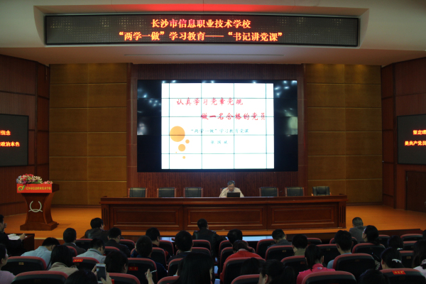 5月27日下午,根据宁乡师范学校党委制定的“两学一做”学习安排,在学校汇智厅召开全体党员会议,由学校党委书记张国斌带头讲党课。