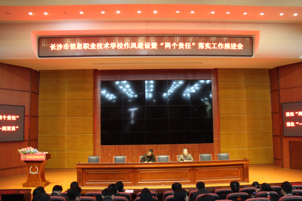 为进一步深入学习领会和积极贯彻执行市教育局关于党风廉政建设的主体责任和监督责任相关文件会议精神,长沙市信息职业技术学校于12月7日下午召开关于作风建设暨 “两个责任” 落实工作推进会,学校领导及全体教职工参会,学校校长郭正良主持会议👩🏻‍🌾💶。