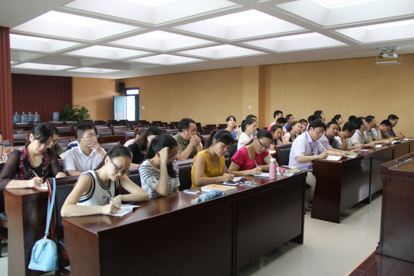 6月17日,长沙市信息职业技术学校“三严三实”专题教育党课在学校宁觉厅开讲。学校领导班子🧑🏫、全体中层干部、教研组长及各党支部书记、委员出席参加。党课由党委书记张国斌主讲。
