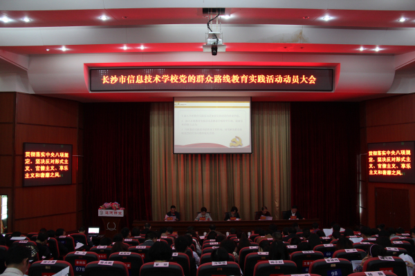 4月9日下午,长沙信息职业技术学校党的群众路线教育实践活动动员大会在学校汇智厅召开。市委督导一组副组长、市政府研究室原党组成员纪检组长屈丽华,组员、市粮食局监督检查处副处长张海春;市教育局副局长王建林,市教育局督导五组组长、市教育局原党委副书记陈出亚,副组长、市教育局副主任督学封纪琴,组员蔡周政、陈磊等领导出席大会。动员大会由学校纪委书记李深山主持,学校校长郭正良作动员报告。学校部分原校级领导成员、全体班子成员、中层干部、关工委主席、教研组长、教代会代表、部分民主党派和无党派人士代表等共计109人参加了会议。