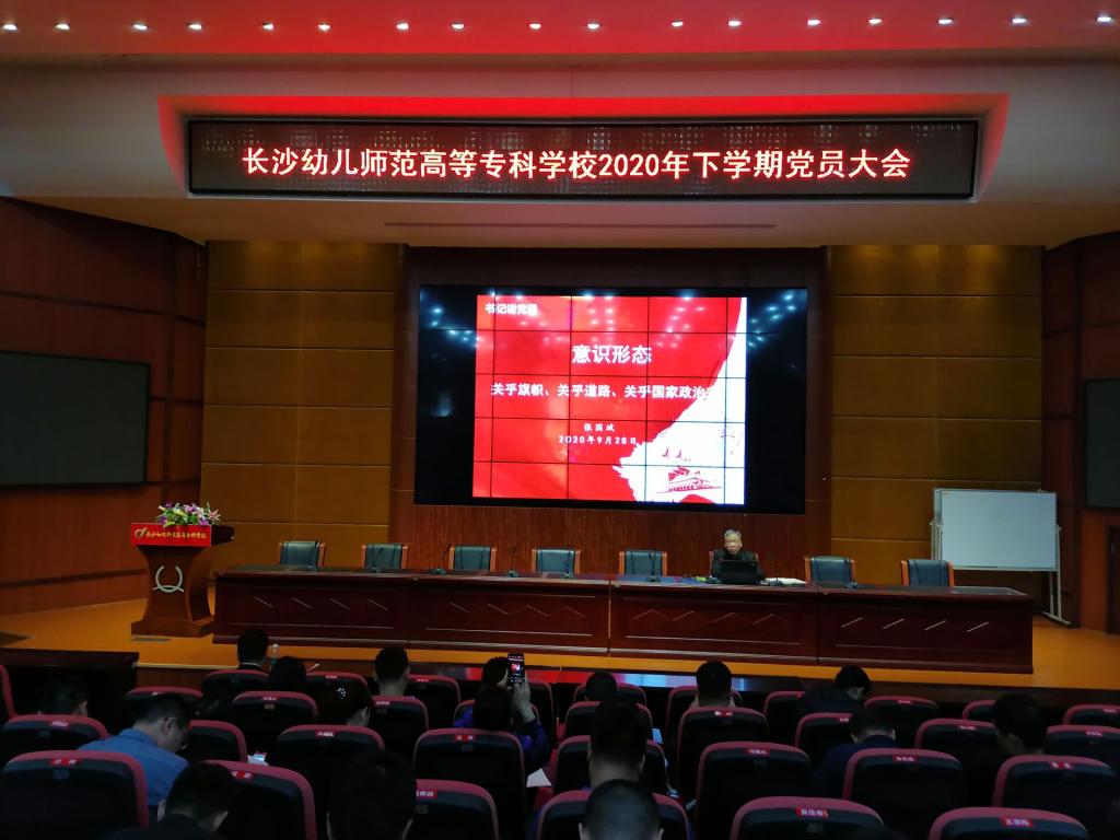 9月28日下午,我校2020年下学期党员大会在汇智厅召开,大会由党委书记张国斌主持🤾🏽‍♂️,全体在职党员参加会议。