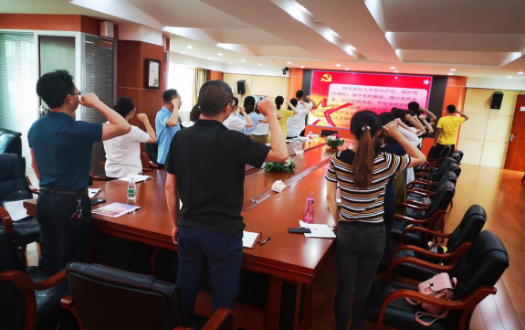 会议伊始,在铿锵的入党誓词声中,在支部书记的带领下,各支部党员面对鲜红的党旗,庄严举起右手,重温入党誓词。恢宏的誓词,一字一句,神圣而豪迈,坚定如磐初心,践行使命担当,更加坚定党员对中国共产党的无限忠诚和为共产主义事业奋斗终生的决心。