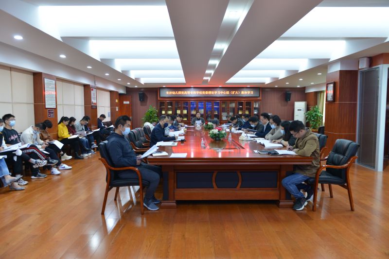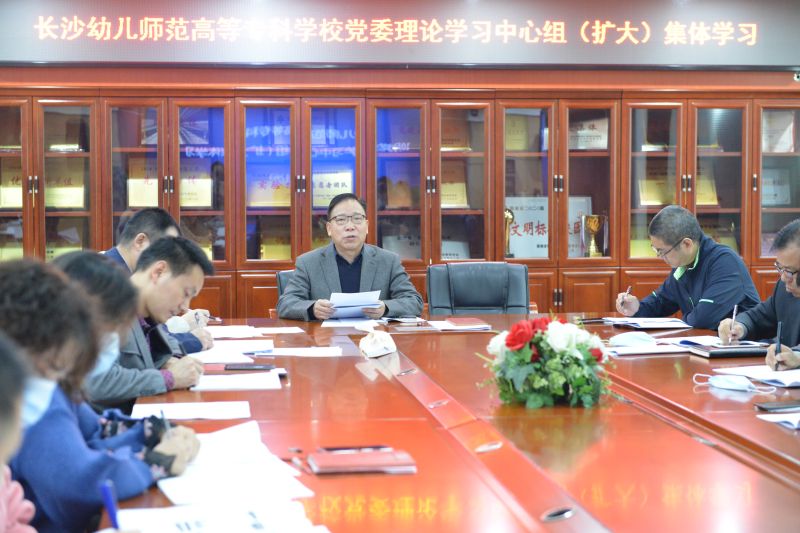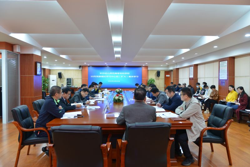 10月29日上午,长沙幼儿师范学校举行2021年10月党委理论学习中心组(扩大)集体学习。集体学习由党委书记张国斌主持,党委班子全体成员、全体中层干部参加。
