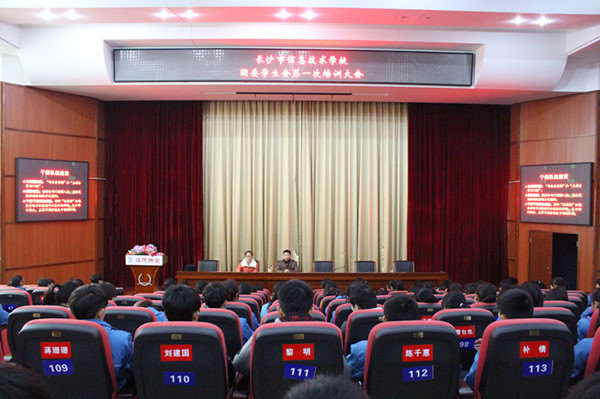 3月6日中午𓀚,长沙市信息技术学校2014年上半年团委学生会第一次全体干部成员培训大会在汇智厅隆重举行,出席此次培训大会的有校团委书记兼学生科副科长周曦,学生科银伶老师和戴申林老师。