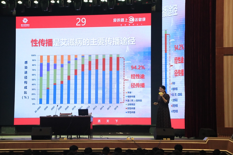 为了加强艾滋病防控工作,增强我校学生防病意识🦒,遏制艾滋病的传播,为学生健康的青春与幸福的人生奠定良好基础🧑🏻🦼➡️,4月18日,由德兰光明基金会带来的艾滋病防控知识讲座在汇美馆隆重举行🍦。本次讲座由我校学生科主办👩👧👦,同升街道健康促进委员会协办🫦⛱,主持人为湖南经视台主播王欢,省妇幼妇女儿童保健科副主任医生陈小英女士主讲。