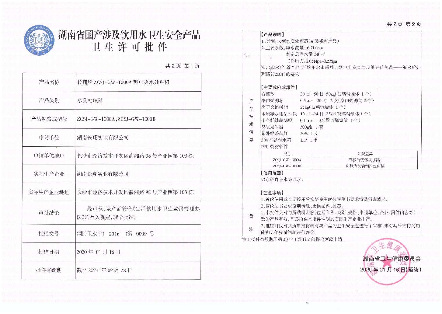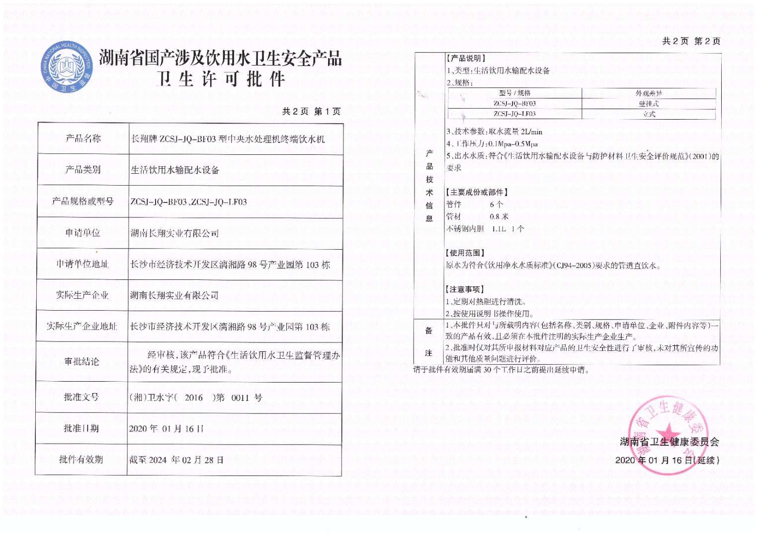 • 学校直饮水供水公司涉及饮用水卫生安全产品卫生许可批件公示