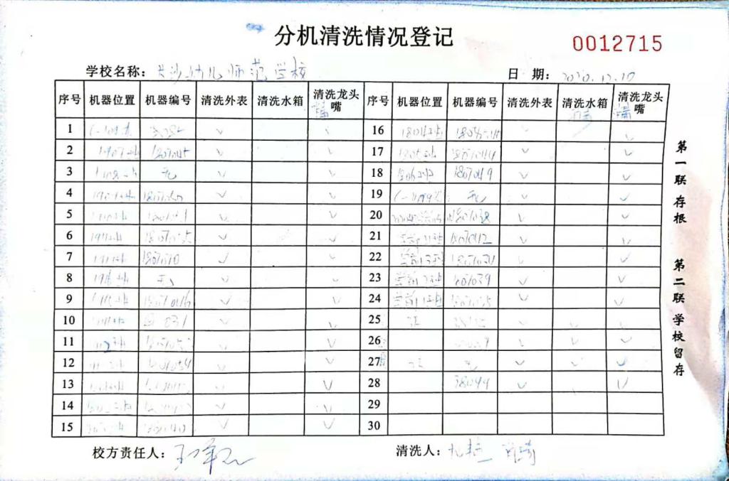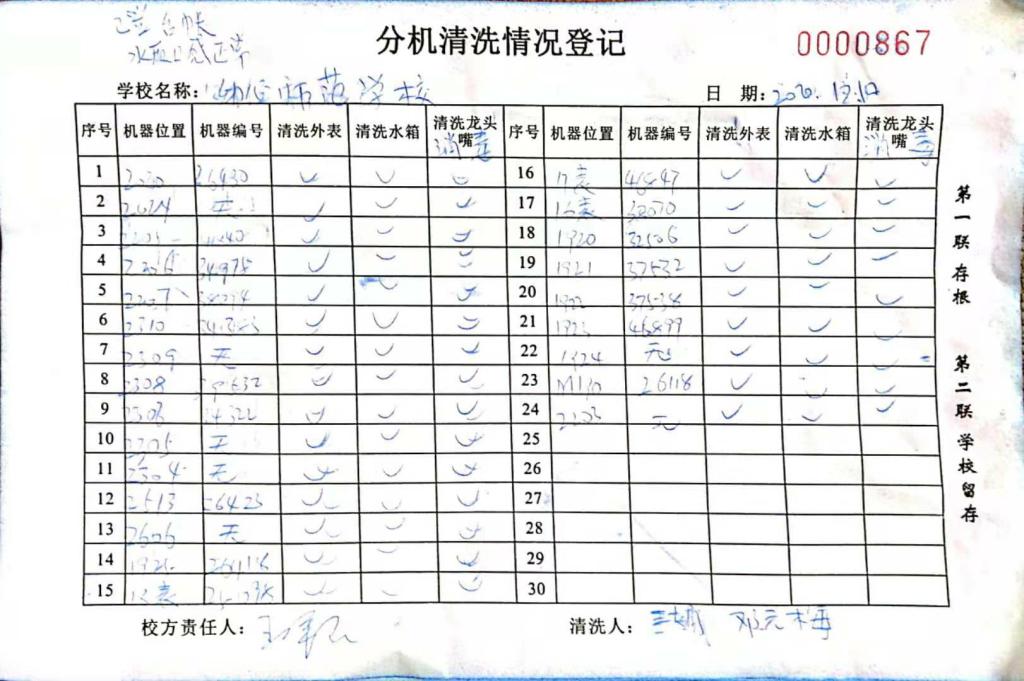 • 2020年12月10日直饮水分机清洗维护情况公示