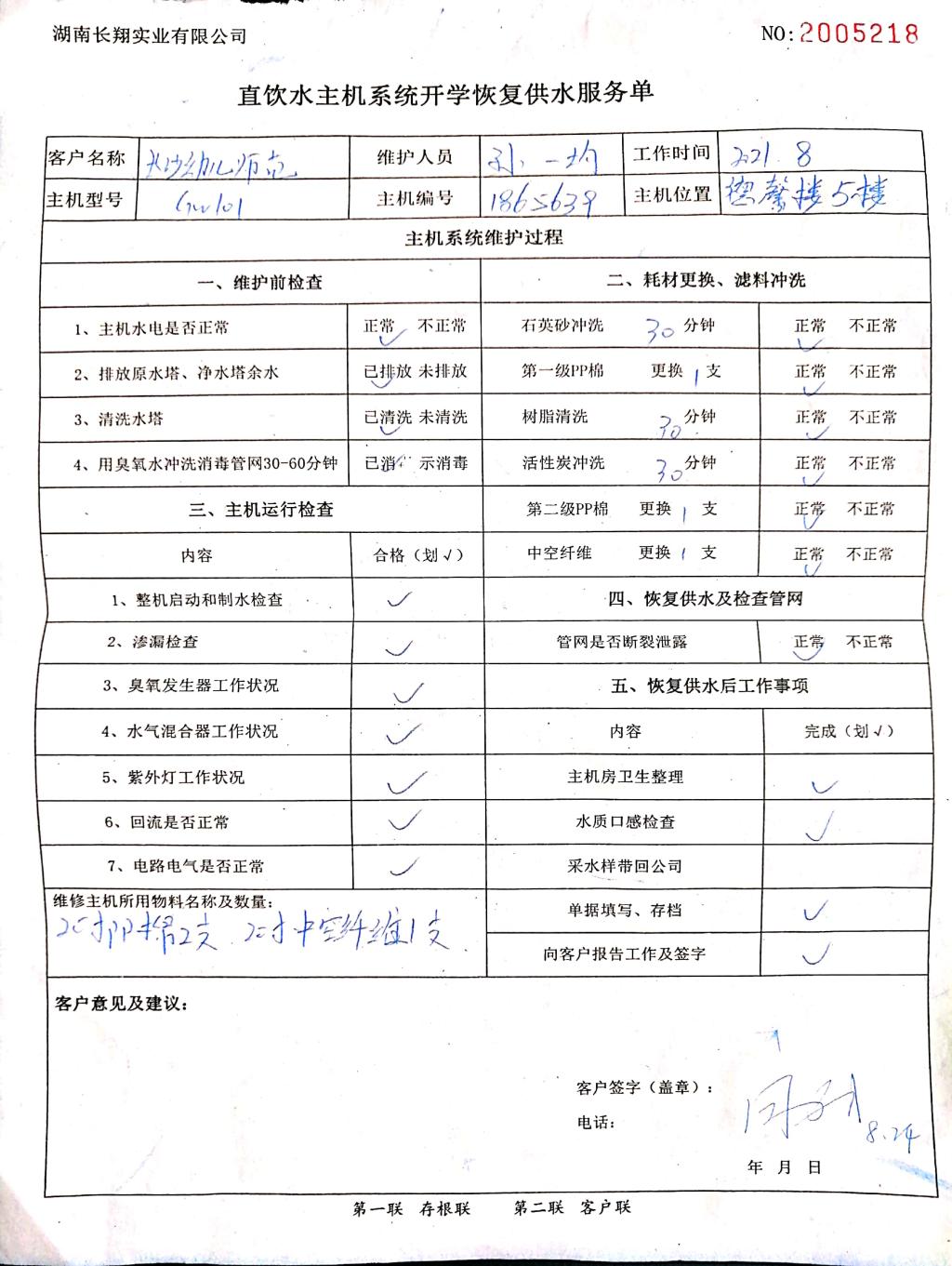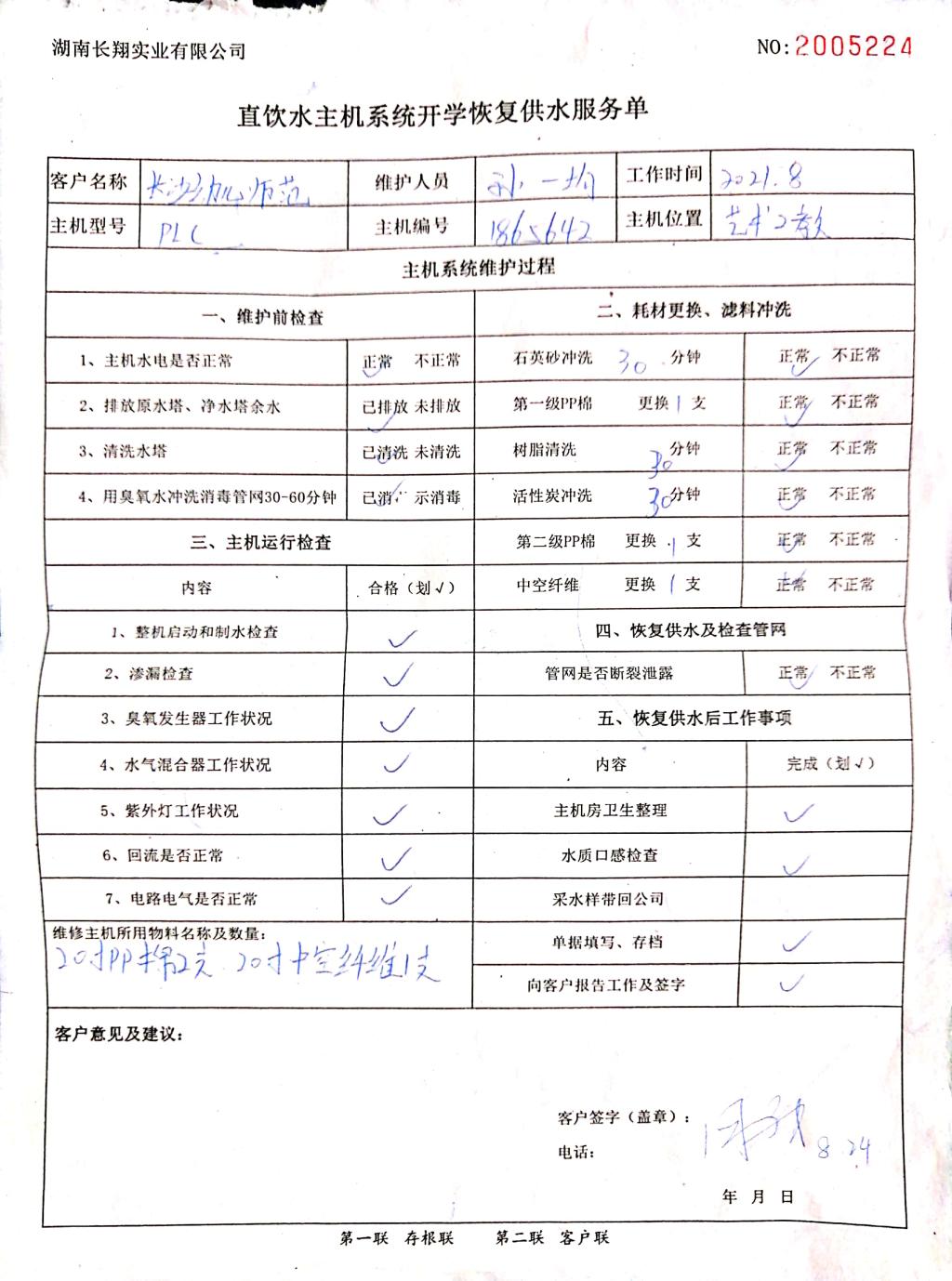 2021年秋季直饮水主机系统开学恢复供水检修维护公示