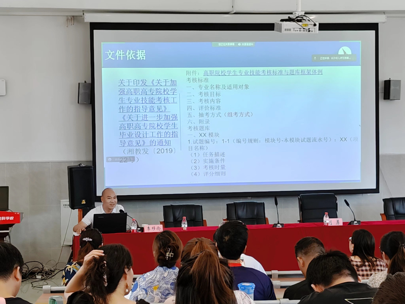 为规范学生专业技能考核标准👩🏽🎨,提升题库的建设质量💁🏼♀️,7月6日,我校邀请常德学院教授李移伦,在我校德馨楼132室展开学生专业技能考核标准与题库建设的专题培训,会议由教务处副处长刘勇主持👋🏽,学校副校长文孟飞及全体教职员工参加了此次培训会议。