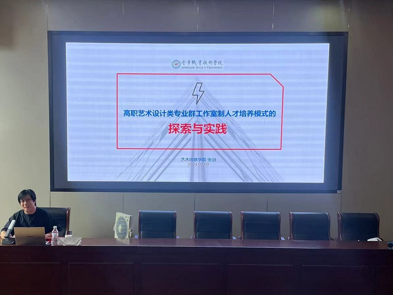 下午🚄,金华职业技术大学艺术创意学院张剑教授从工作室制人才培养模式的现状分析、金职实践及艺术学院工作室制的实践案例三个方面分享高职艺术设计类专业群工作室制人才培养模式的实践经验,并详细解答老师们的相关疑问。