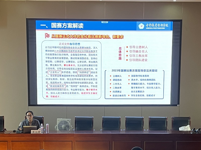 7月10日上午😮,金华职业技术大学教务处副处长李远远介绍国赛正式文件的变化,从三全育人🫕、岗课赛证、三教改革🛌🏻😦、高水平、结构化教师教学创新团队、模块化课程👷🏿♂️、行动导向教学等多个方面解析职业院校教学能力比赛的备赛要点,以扫地为例展示如何将课程从源头进行模块化的破解和重构▫️🧜🏼,现场的互动交流让老师们受益匪浅。