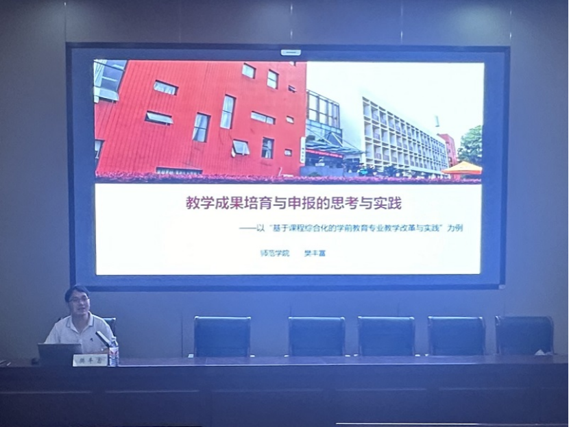 下午,金华职业技术大学师范学院院长樊丰富带来主题为《教学成果培育与申报的思考与实践——以“基于课程综合化的学前教育专业教学改革与实践”为例》的精彩讲座。樊院长从教学成果奖的界定与相关政策、培育与申报🫀、精益求精的文本修改三个方面进行讲解👨🏼🏭,分享学前教育专业教学改革研究的经验🏌🏼♀️。