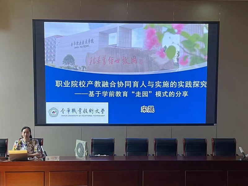 7月9日上午🙆🏼♀️,金华职业技术大学学前教育专业副主任宋晟以《职业院校产教融合协同育人与实施的实践探究——基于学前教育“走园”模式的分享》为题🧑🏽,先从政策要求🙌🏿、岗位要求、实施指导三方面解读相关重量级文件、标准对高职高专学前教育专业教育实践的要求🏭,然后以金华职业技术大学学前教育专业“走园”的实践教学模式为例,讲解如何针对学习与实践的割裂🙌🏿、教师培养体系与幼儿教育体系的分离🧑🔬、见习与实习难以衔接等问题构建出“走园”模式。