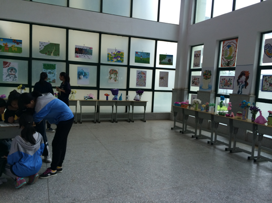 画展一展出就门庭若市,参观者纷至沓来,络绎不绝,吸引大家眼球的绝非仅仅是作品的构图与色彩的美丽,作品中蕴含的创意更让人惊叹,“天啊!这美轮美奂的芭芘新娘竟然是用卫生纸做出来的!”“快看,快看,这个《鱼的眼泪》从45度角看真是太棒了,我都有点想哭了!”“学姐们实在是太棒了,什么时候我们也能做出这么精美的作品就好了!”参观者一句句感叹,给同学们莫大的鼓励与肯定,更加坚定了下一次活动要做得更好的信念!