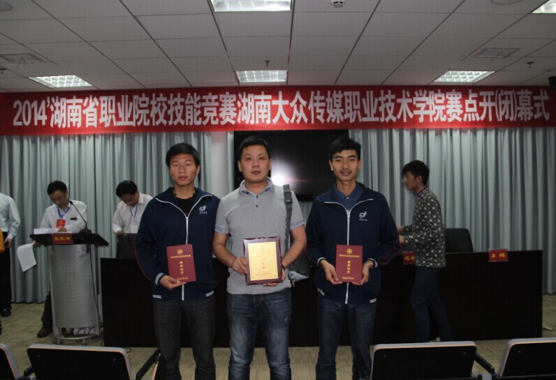 5月18日,2014年湖南省职业院校技能竞赛信息技术类专业在湖南大众传媒职业技术学院落下帷幕。我校选手周茂强和肖佳庚在大赛中表现优异,在参赛的22支队伍中脱颖而出,获得中职信息技术类专业企业网搭建项目一等奖。指导老师彭勃、廖健获优秀指导老师奖。