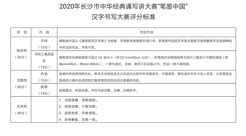大赛设硬笔和软笔两个类别:学生组、教师组2个组别。