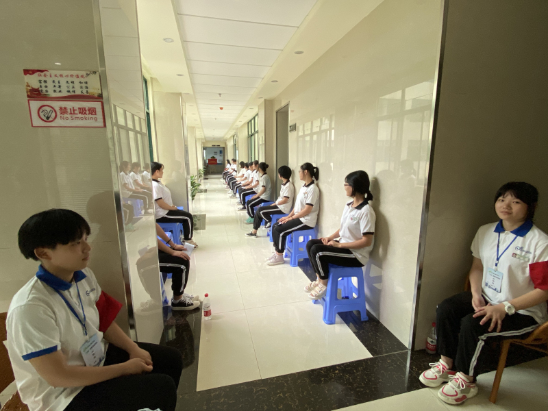 疫情期间保持安全距离候考、备考
