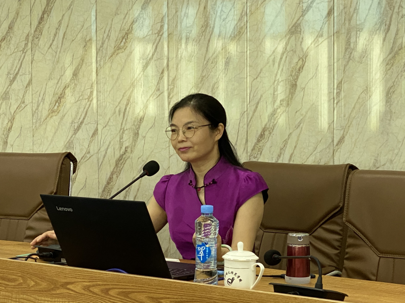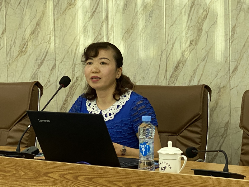 随后,刘勇结合省培就课程思政建设工作进行交流。她从思政教育资源和元素挖掘、课程思政教学设计以及课程思政教学实施三方面分享培训内容,分享了张智强教授、黄友全教授、龚娟教授等名家的成功经验,并以《学前儿童卫生保健》课程为例阐述了学前教育类课程思政建设的路径与方法。