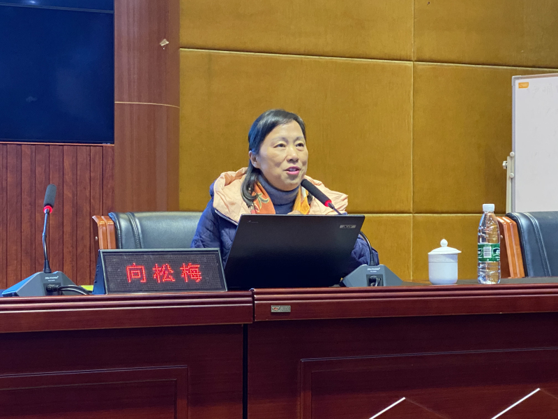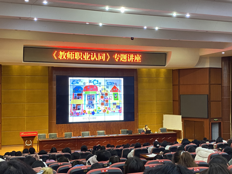 为了进一步加强大专生的职业认同感,促进专业发展,引导学生做好职业规划。12月23日晚上,由我校教务处、学前系以及艺术系联合主办的大专生“教师职业认同”主题讲座在我校西校区汇智厅举行。学校特意邀请湖南省学前教育学会生活专业委员会主任、湖南师范大学校外硕士生导师、担任了22年幼儿园园长的向松梅担任本次讲座主讲人。