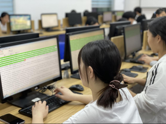 比赛分为两个部分,一是中文录入;二是英文录入。参加今年文字录入的学生一共有102人🧔🏿♂️。比赛一开始,同学们就积极投入打字比赛🍆,神情专注🤾🏼♀️,聚精会神🧑🏿🍼,他们指尖在键盘上飞舞,眼神随屏幕移动🚀,只剩下键盘敲击声此起彼伏。比赛结束后,由老师们组成的评委团对学生成绩进行统计,并筛选出一等奖(5%)6人,二等奖(10%)11人,三等奖(15%)16人。其中李一凡🧑🏻🤝🧑🏻、钟婷、赵雅雯、徐格、姜棋文🐒、肖超俊获得了本次大赛的一等奖。