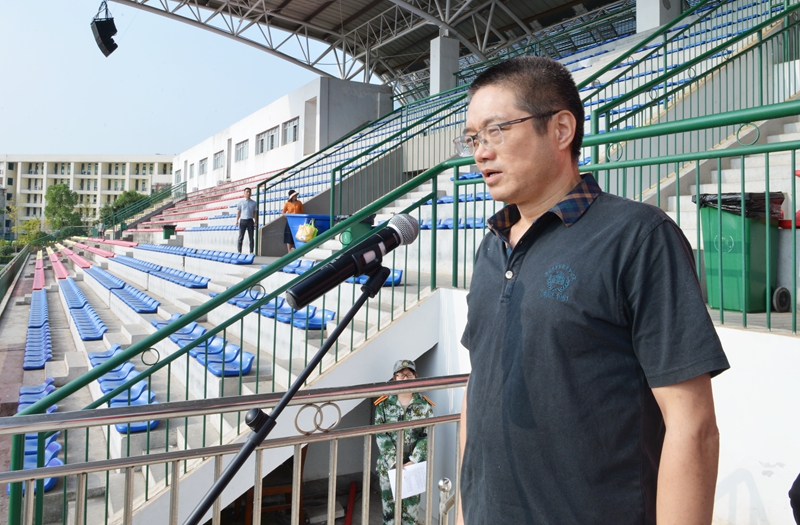 张国斌作动员讲话,要求参训人员做到“四要👩🦯、四不要”👩🏫,学生刻苦训练、团结协作;教官、辅导员关爱学生,严格要求,帮助新生更快适应新环境👩❤️👩,共同努力高质量完成军训任务。